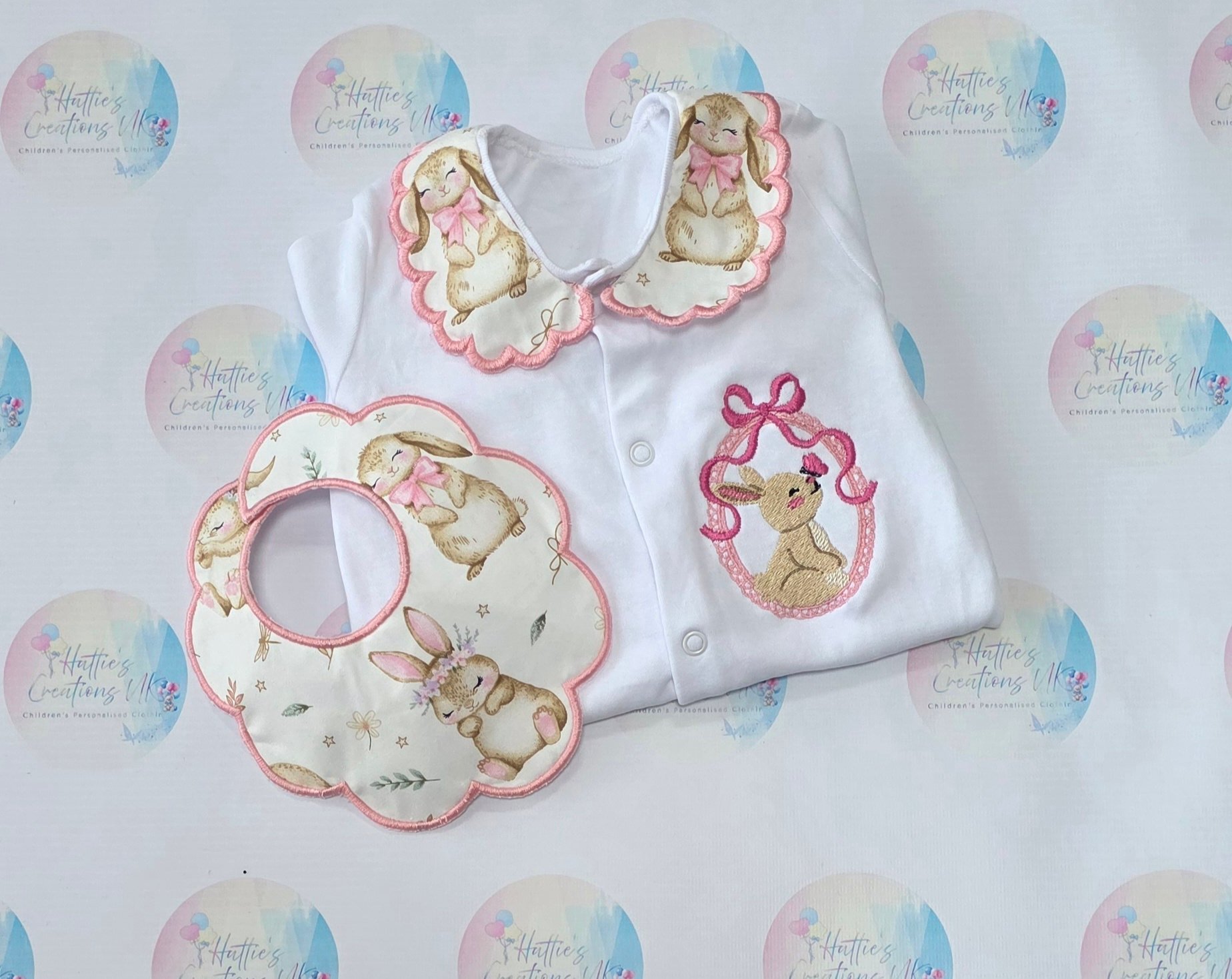 🐰 Personalised Baby Girl Bunny Outfit & Bib Set 💗