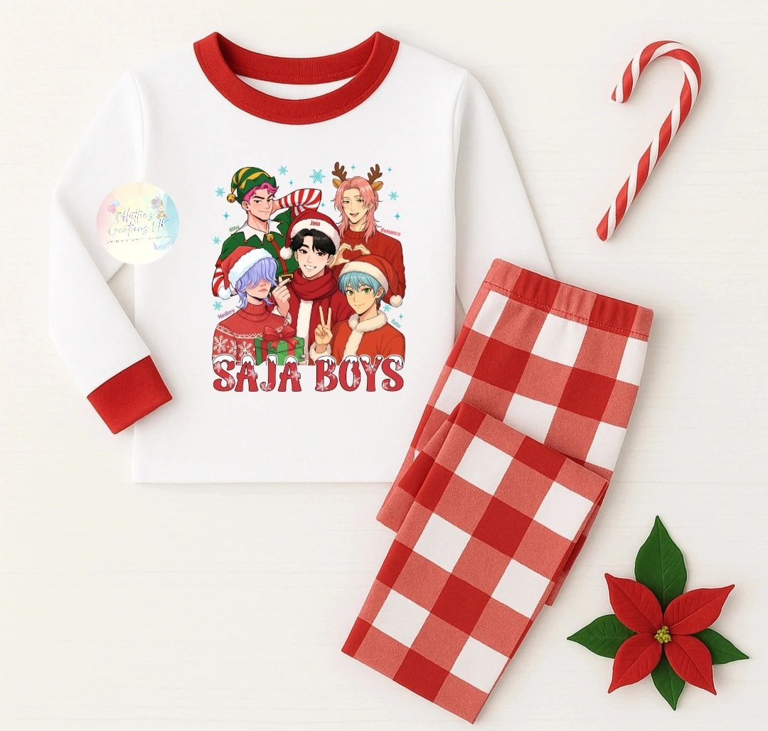 Shop our gorgeous kpop Demon hunters personlised merry Christmas pyjamas