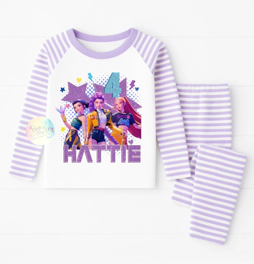 Shop our gorgeous kpop demon hunters personlised birthday pyjamas Available in any age