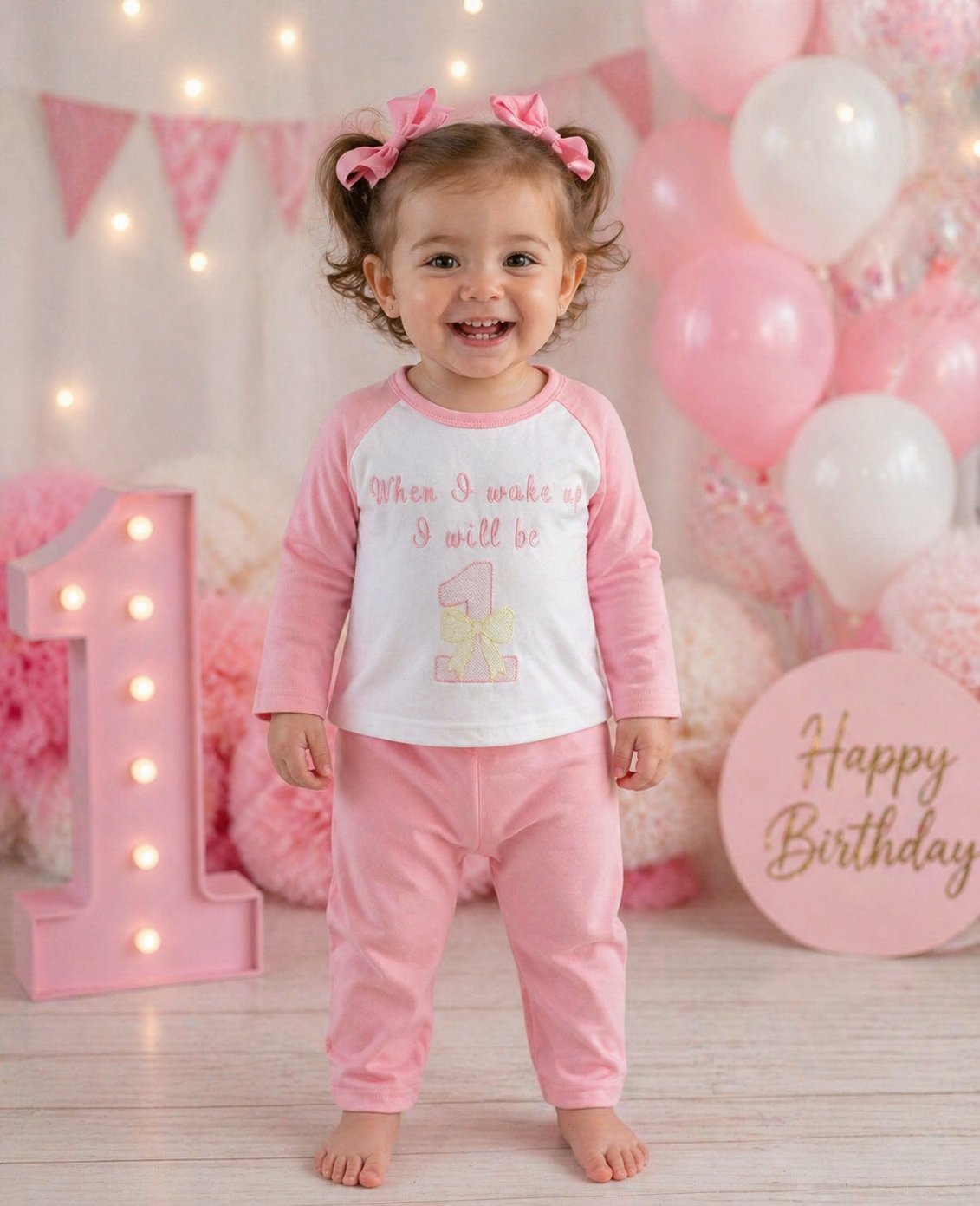 Personalised embroidery bow design 1st birthday pyjamas Available in ages 1-4 yrs
